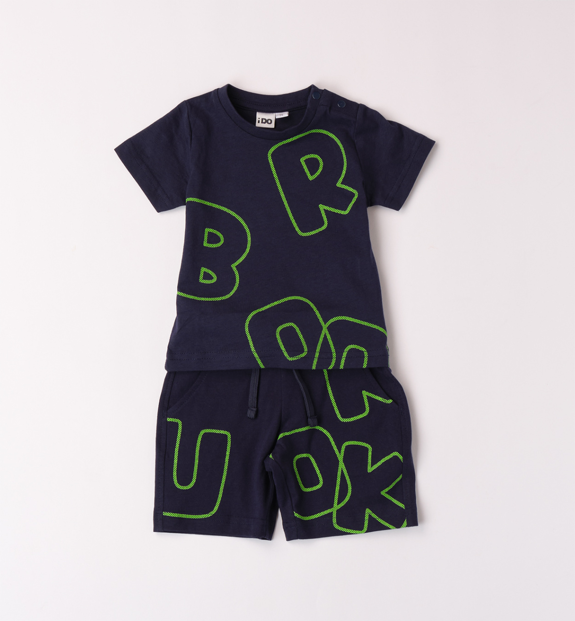 Комплект для мальчиков от итальянского бренда iDO. Модель состоит из двух предметов: футболка и шорты. Футболка с круглым вырезом и плечевой застежкой на кнопки до 3-х лет. Шорты с эластичной талией и боковыми карманами. Отличный вариант для выходного дня!